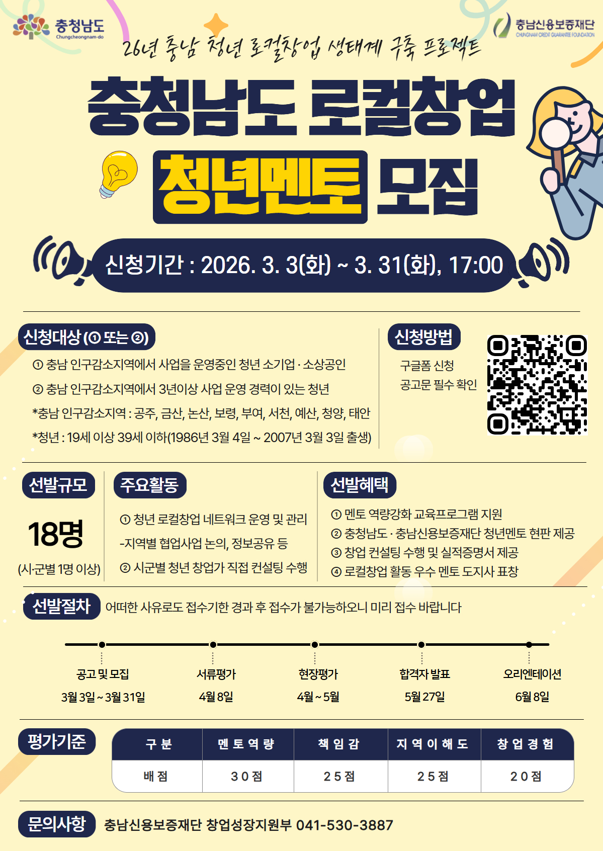 | 제목 | 충청남도 로컬창업 청년멘토 모집 공고 | ||||